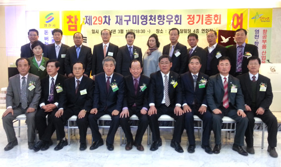 재구미 영천향우회(회장 양병구)는 지난 19일 구미 크리스탈웨딩에서 제29차 정기총회를 개최하였다. 이날 행사에는 서울, 대구, 포항 등 전국의 영천향우회장과 임원, 구미지역 기관단체장 등 많은 내빈들이 참석했다.