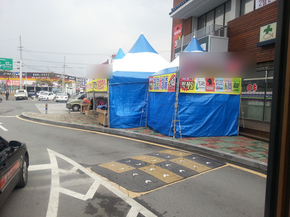 보행자의 안전한 통행을 위해 설치된 인도가 천막으로 막혀 통행에 많은 어려움을 겪고 있다. 영천버스터미널 앞 인도에는 상인들이 설치한 천막으로 보행자들이 지나가지 못하는 현실이다. 이곳 상인은 “죄송하다. 이번 주까지 철거할 예정이다. 통행에 불편을 주어 거듭 죄송하다.”고 말했다.