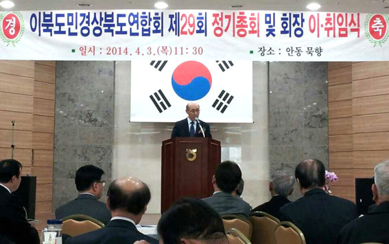 이북도민회 경상북도 연합회 제29회 정기총회 및 회장 이취임식이 지난 3일 안동시 송현동에 위치한 묵향식당에서 100여 명의 관계자들이 참석한 가운데 열렸다. 안동시 출신 김영상 회장이 신임 회장으로 취임했다.