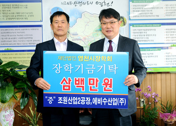 지난 15일 에비수산업(주)(대표이사 오대현)과 조원산업(대표 홍진환)은 지역인재양성을 위해 써달라며 영천시장학회에 12년간 매년 300만원씩(에비수산업 200만원, 조원산업 100만원) 장학금을 기탁하기로 했다.