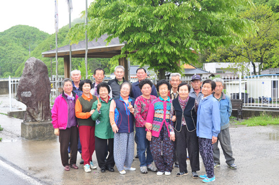 ↑↑ 정원익 이장(뒷줄 좌측에서 네번째)이 주민들과 기념촬영을 하고 있다.