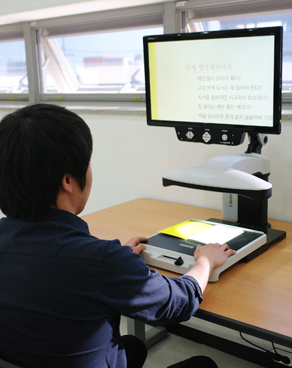 | | | ↑↑ 시각장애인과 노인을 위한 독서확대기 | | ⓒ 영천시민뉴스 | | 2층 디지털자료실 입구에는 시각장애인이나 노인들을 위한 독서확대기와 청각장애인을 위한 음성지원독서기가 비치되어 있다. 또 디지털자료실의 컴퓨터를 통해 일반 인터넷정보검색은 물론, 문서편집, 출력서비스를 이용할 수도 있으며 노트북 사용자들의 공간을 별도로 마련해 놓기도 했다. 매달 신간 DVD를 구비해 최신영화를 DVD로 감상할 수도 있다.