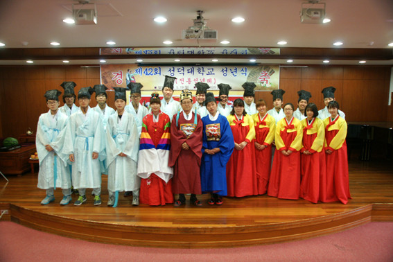 성덕대학교는 지난 19일 제42회 성년의 날을 맞아 창의관 5층 대강당에서 전통 성년례를 거행했다. 이날 성년례는 신녕향교 권오륙 전교의 진행으로 올해 성년이 되는 학생들 중 김시윤 학생(응급구조과), 이민정 학생(작업치료과)이 대표 성년자로 참가해 교직원과 선후배 학생들의 축하를 받았다.