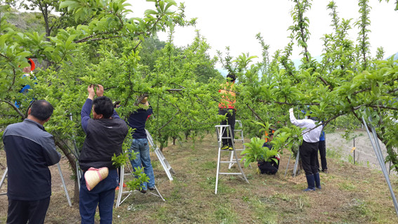 이날 일손돕기에는 자양면 직원 10여명이 참여해 용산리 농가의 자두밭에서 이른 아침부터 적과방법을 교육받고 적과 작업을 실시했다.