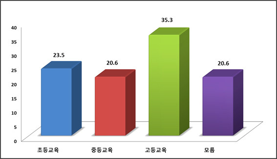 ① 초등교육 ② 중등교육 ③고등교육 ④ 모르겠다