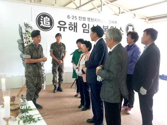 영천시 재향군인회(회장 조영제)와 안보단체 대표는 지난 12일 오후 영천대대를 방문하고 국방부와 영천대대에서 추진하고 있는 6·25전쟁 당시 최후방어선이며 최후격전지에서 이름도 얼굴도 모르는 호국용사들의 유해를 발굴하여 부모 친지의 품으로 보내기위한 유해발굴 작업을실시하고 있다.