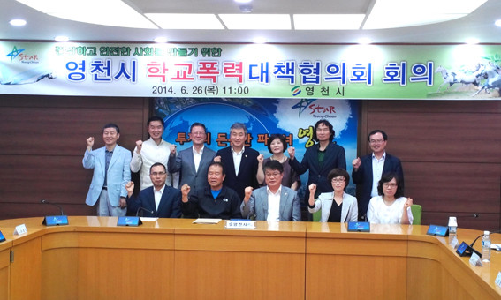 | | | ⓒ 영천시민뉴스 | | 영천시(시장 김영석)는 지난달 26일 시청 영상회의실에서 영천교육지원청, 영천경찰서, 학교장, 시민단체 대표 등 각계각층의 관계자들과 학교폭력 예방대책을 공유하고 협조체계를 강화하기 위해 학교폭력대책협의회를 개최했다.
