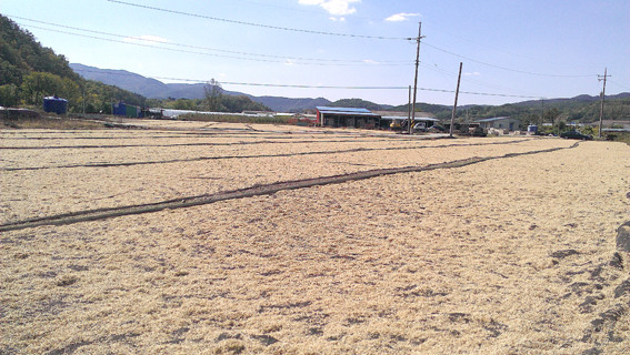 ↑↑ 넓은 부지에 펼쳐진 엿기름 건조작업이 장관이다.