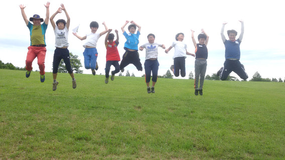 ↑↑ 영동중 재학생들이 다함께 점프하는 모습.