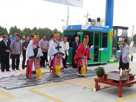 금호농협(조합장 정윤식)클린주유소가 지난 15일 금호읍 농산물 유통센터 앞 주유소에서 화재예방과 안전한 영업과 발전을 위한 안녕기원제를 지낸 뒤 영업을 시작했다.