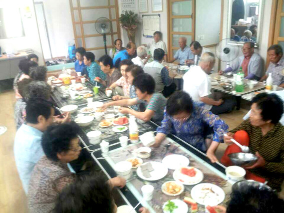 김태식 회장은 이날 회원 68명과 함께 삼계탕을 시식한 뒤 양말 등 선물을 전달하기도 했다.