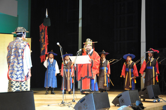 부산에서 온 구덕민속예술보존회(무형문화제 제6호)의 강신일 대표를 비롯한 7명의 신나는 사물놀이로 문을 연 행사는 환영인사, 국서교환, 기념촬영 순으로 이어졌다.