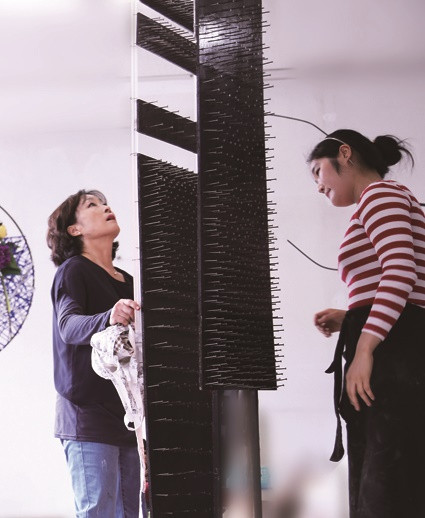 | | | ↑↑ 와이어에 하나하나 대나무살을 짜며 작품을 완성해 가고 있는 손영애 씨. | | ⓒ 영천시민뉴스 | |