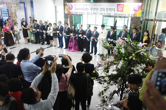 플로리스트 손영애 씨가 지난 25일 오후 2시 영천상공회의소 1층 로비에서 꽃디자인 전시회 ‘ Serendipity, 우연한 것의 뜻밖의 발견’ 리셉션을 개최하고 3일간의 전시에 들어갔다.