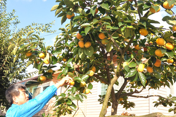 오곡백과가 무르익는 수확의 계절 10월이다. 풍요로움이 가득한 10월이지만 올해는 과일 시세가 하락하면서 농민들의 마음이 편치만은 않다. 사진은 임고면 신재경 씨가 빨갛게 익은 감을 수확하고 있다.
