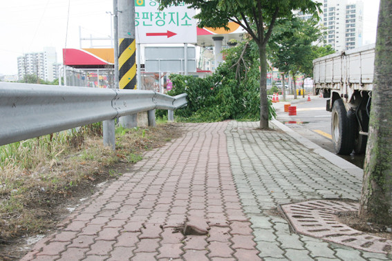 망정주공아파트 사거리에서 그린환경센터까지 약 2km구간의 인도가 패이고, 솟아오르는 등 엉망이면서 부러진 가로수까지 인도를 막고 있어 불편을 가중시키고 있다.