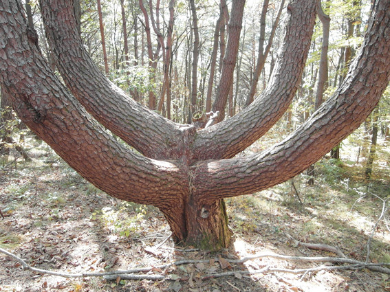 경계지역을 따라 탐사해 나가는 것이라 능선처럼 길이 잘 나 있었다. 소나무 ‘연리목’이 장관을 이루고 있었다. 능선에서 약 20m 벗어난 지역에 있었으나 이상하리 만큼 장관을 이루고 있었다. 좀처럼 보기 드문 연리목은 깊은 곳에 자리하기에 남녀 관계가 서먹서먹하기나 아주 부자연스런 관계가 되면 여기를 몇 바퀴 돌고나면 좋아 진다고 한다. 특히 부부관계가 효과가 있다고 한 대원이 설명했다. 대원들은 “카메라에 연리목을 담으면 기를 받을 수 있다”는 말에 너도 나도 셔터를 눌러 대기도 했다.