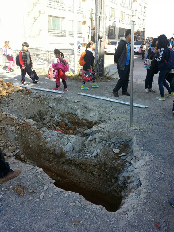 포은초등 옆 아파트분양 모델하우스 신축현장에 큰 웅덩이가 생겼으나 장시간 방치해 안전불감증이 얼마나 심각한 수준인지 보여주고 있다. 안전시설이 부족하다는 민원이 잇따르자 시공회사에서 웅덩이를 메웠으나 통학로 안전사고 위험은 여전히 높다.