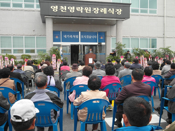 오미동에 위치한 영천영락원장례식장(대표 천정로)이 지난 7일 오전 영락원장례식장 앞마당에서 오미동 주민 및 장례식장 관계자 100여 명이 참석한 가운데 문을 열었다. 영락원장례식장은 약1만㎡ 부지에 넓은 주차장과 2층 건물에 6개의 크고 작은 빈소가 최신 시설을 갖추고 있다.