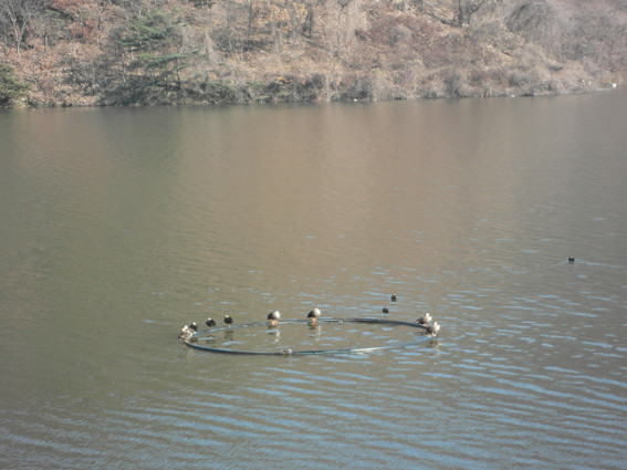 고경저수지(파계지)에 겨울새 청둥오리들이 한가한 오후를 즐기고 있는 모습이 카메라에 잡혔다. 저수지에 뜬 고기잡이용 도구위에서 햇볕을 즐기며 단란한 한때를 보내고 있는 모습이 행복해 보인다.