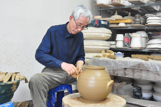 ↑↑ 항아리를 빚고 있는 박용태 씨.
