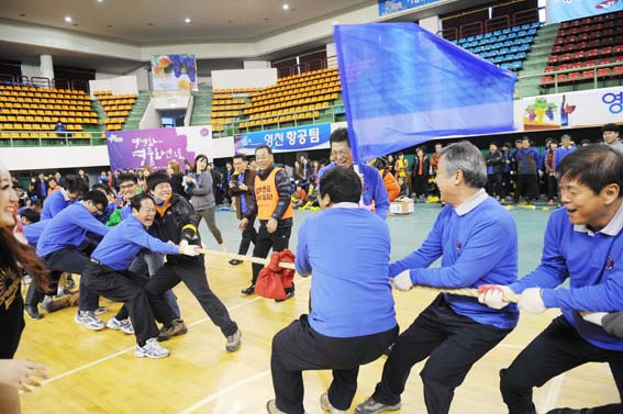 영천시는 지난 12일 영천체육관에서 제8회 직원화합 한마당체육대회를 개최했다. 필수 근무인력을 제외한 700여명의 공무원들이 참가해 씨름 단체줄당기기 노래자랑으로 화합을 다졌다.
