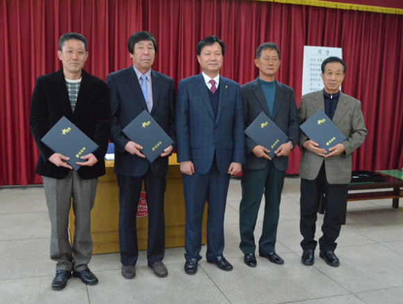 면직원의 인사이동으로 조영준 이명희 손태원 최상규의 자리에 양재열 유창식 황신영 김하영 새로운 면직원들의 소개가 이어지고 신임이장 방형백(운천2리) 방갑렬(대재리) 김정도(사리1리) 백원찬(사리2리)에게 임명장을 수여했다.