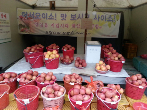 도로를 중심으로 한쪽에 사과밭이 있고 맞은편에 무인판매대를 두고 있으니 지리적으로도 상당히 유리한 거점인 듯 보였다.