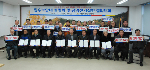 지난 22일 영천시선관위에서 열린 공명선거실천 결의대회에 참석한 출마예정자들은 흑색비방선거나 불법선거조장을 근절하고 공명선거 정착에 노력할 것을 약속했다.