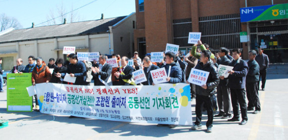 이날 기자회견에는 임고농업경영인회(회장 이병락)을 비롯해 귀농협회(회장 김석봉), 농민회(회장 이운기), 번영회, 자연보호협의회(회장 조재희), 자율방범대(대장 이권희), 청년회(회장 최규현), 임고공부방, 생활개선회(회장 방남순)등 각 기관단체장과 복숭아·살구 공선회 회원 그리고 조합원, 출마자등 50명이 모여 진행됐다.