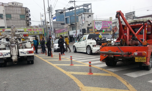 지난 28일 11시 40분경 영천교 입구(남쪽)에서 승용차 2대 접촉사고가 일어났는데, 경미한 사고에 ‘견인차’ 5대가 사고 시간과 비슷한 시각에 출동해 지나는 시민들이 사고 보다 ‘견인차 출동’에 더 관심을 가졌다.