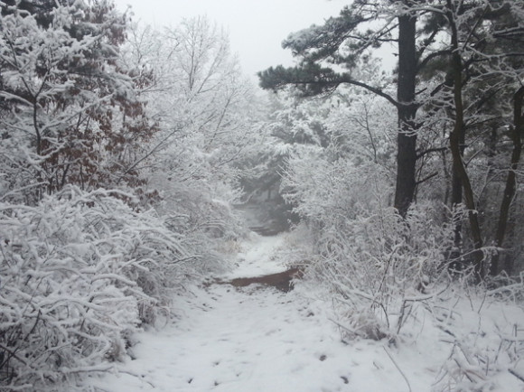 영천에서 가장 아름다운 창신 뒤산 ‘둘레길’ 설경이 한 겨울 함박눈 보다 더 빼어한 아름다움을 연출했다.