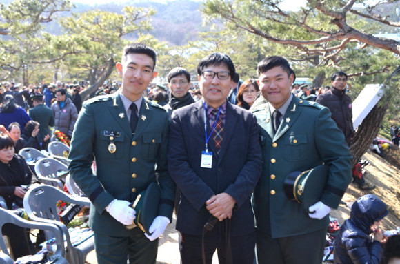↑↑ 좌로부터 박윤근 소위, 박 소위의 아버지 박수문 씨, 김경진 소위.