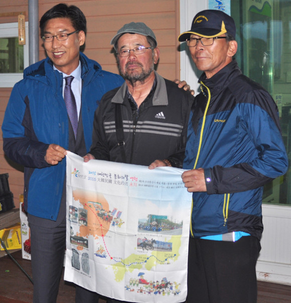 오후 5시가 가까워질 무렵, 치산캠핑장에 도착한 조선통신사 우정걷기팀은 영천시에서 직영하는 유명관광지인 치산캠핑장에서 하룻밤을 머물렀다. 각자 배정된 캐러반에 여장을 풀고 잠시 휴식을 취한 뒤 인근의 식당으로 향했다. 하루종일 어둡게 깔린 구름이 기어이 토해내기 시작한 물방울이 떨어지기가 무섭게 장대비로 바뀌었다. 식당에서는 미리 준비해둔 만찬과 영천의 특산품인 와인을 곁들여 여기저기 구호와 건배를 외치며 그간의 고단함을 해소하기에 충분했다. 350㎞를 걸어온 노장들을 격려하기 위해 바쁜 일정에도 참석한 김병삼 영천시부시장은 “이런 힘들고 긴 여정에 참여하는 여러분의 신념과 체력에 박수를 보내며 존경을 표한다.”고 인사했다.