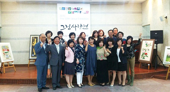 ↑↑ 그림사랑회 회원들과 이용수 면장이 오픈식을 마치고 기념촬영을 하고 있다.