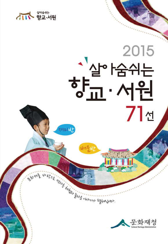 ‘살아 숨 쉬는 향교ㆍ서원사업 71선’은 국민이 직접 지역 문화재의 가치와 의미를 보고 느끼고 즐길 수 있도록 하기 위해 문화재청에서 진행한 사업으로 ‘생생문화재 사업 104선’과 함께 제작ㆍ배포한 것이다.