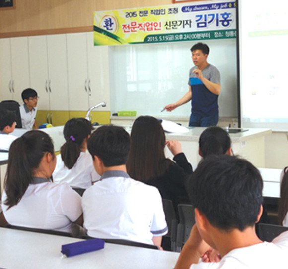 김기홍 기자는 지난 13일 영천중학교(교장 노수봉) 재학생 30명에게 NIE수업 및 언론인 직업교육을 진행했다. 이틀 뒤인 지난 15일에는 청통중학교(교장 도종육)에서 전교생을 대상으로 전문직업인 초청 특강의 시간을 가졌다. 이번 특강에서는 ‘신문이란 무엇인가’에 대하여 강의한 후 기자와 신문사의 역할과 기사 쓰는 요령 대하여 설명했다.