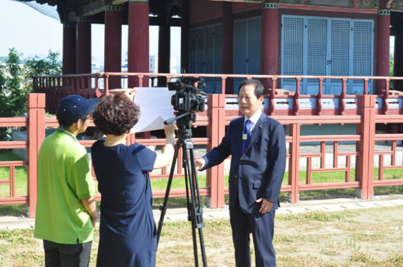 지난달 27일 YTN방송에서 영천일대의 조선통신사 관련 유적지를 촬영하기 위해 지역을 방문했다. 먼저 조양각 일대를 찍고 김영석 영천시장(우측)과 인터뷰한 뒤 임고서원과 신녕 관가샘 등지를 촬영했다. 이날 촬영은 오는 6월10일 저녁 8시 YTN 사이언스 프로그램에서 방영될 예정이다.