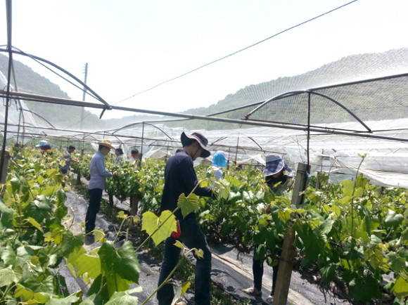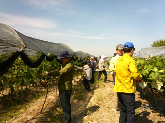 30도를 웃도는 더운 날씨에도 불구하고 일손돕기에 나선 직원들은 3000㎡에 이르는 경작지에서 포도순 제거작업을 자신의 일처럼 정성을 다하는 모습을 보여 고령화, 이농현상으로 인해 노동력 부족과 인건비 상승 등으로 어려움을 겪고 있는 농가로부터 큰 호응을 얻었다.