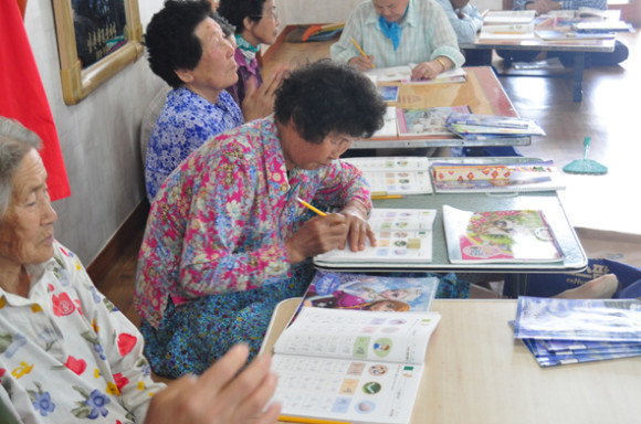 어르신들이 무더위에 불구하고 한글공부에 여념이 없다. 화남 대천2리 경로당의 어르신들은 매주 화요일 문해교육을 하고 있다. 사진은 지난