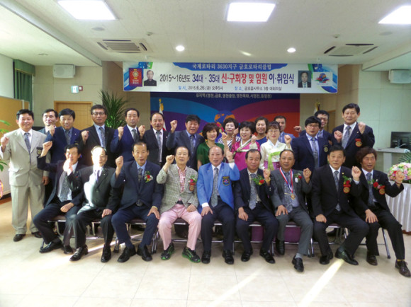 | | | ↑↑ 오기봉 신임회장이 취임후 회원들과 화이팅을 외치고 있다. | | ⓒ 영천시민뉴스 | | 금호로타리클럽 신구 회장 및 임원 이 취임식이 지난 26일 오후 금호읍 사무소 회의실에서 김영석 시장, 권호락 시의장 및 회원 등 100여 명이 참석한 가운데 열렸다. 김홍국 직전회장은 “봉사의 35년이라는 오랜 역사와 빛나는 전통속에서 1년을 마치게 된 것은 참여해준 모든 분들의 덕이다”고 강조했다.