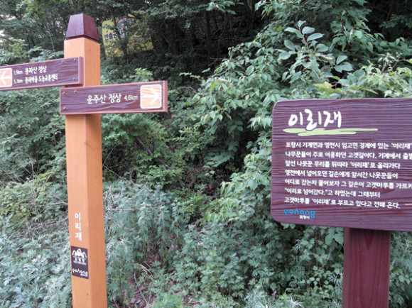 어느덧 임고면 수성리와 포항시 기계면 봉계리와 경계를 이루는 곳, 이리재에 도착했다.