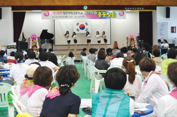 지난 12일 영천여자고등학교 강당에서는 조용한 교정의 정적을 깨는 박수와 함성소리가 들려왔다. 제16회 영천여고 총동창 한마음대회에 모인 100여명의 동문과 까마득한 선배들의 행사를 축하하기 위한 무대를 준비한 재학생 후배들이 함께하는 1년만의 뜻깊은 자리였다.