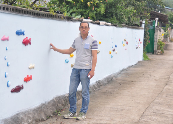 정 작가는 “마을앞 하천을 보며 청정마을임을 알려주는 맑은 강물과 그에 어울리는 민물고기를 표현하고자 했다.”고 프로젝트의 주제를 설명했다. 밝은 색으로 만든 벽면위에 부조의 민물고기를 자유롭지만 조화있게 배치해 남녀노소 누구나 작품을 쉽고 가깝게 느낄 수 있게 만든 작품이다.