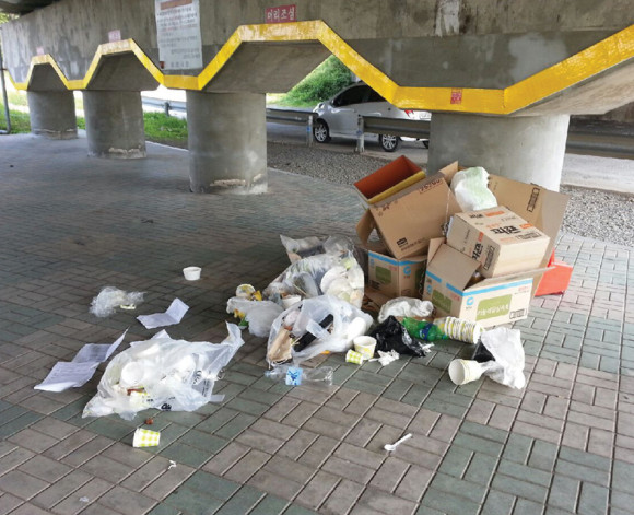 단포교 밑은 영천시민들의 휴식공간으로 자리를 잡은 지 오래다. 지난달 23일 영천지역 한 단체에서 모임을 한 뒤 각종 쓰레기를 방치하고 떠나버린 것을 한 시민이 사진을 찍어 본사에 제보했다. “쓰레기 중에는 단체 회원 명부도 있었다. 경각심을 심어줬으면 한다”고 말했다.