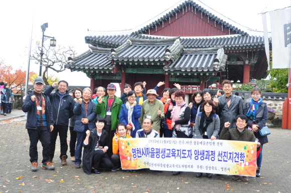영천시 마을평생지도자협의회(회장 민복매)는 평생교육지도자양성과정 강의가 진행되는 가운데 교육의 한 과정으로 선진지역을 탐방하는 시간을 가졌다.