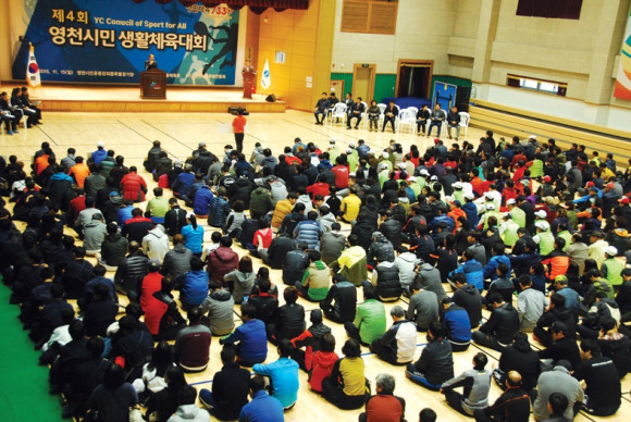 | | | ↑↑ 생활체육동호인의축제답게 참가한 선수임원들이 앉은 상태에서 개회식이 열리고 있다. | | ⓒ 영천시민뉴스 | | 제4회 영천시민생활체육대회가 지난 15일 영천시생활체육관에서 개회식을 갖고 13개 종목별 경기장에서 일제히 개최됐다.