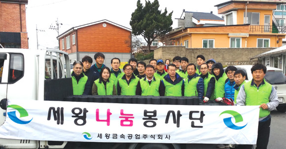 세왕나눔봉사단(단장 허준)은 지난달 28일 관내 저소득층 21가구에 연탄 6300장을 배달했다. 이에 앞서 10월에는 마야노인요양전문병원을 찾아 치매예방프로그램을 전달하고 환경미화활동을 벌였다. 세왕금속 영천공장 직원들로 구성된 봉사단은 매년 어려운 이웃돕기, 농번기 일손돕기, 환경정화 활동 등 다양한 봉사활동을 펼치고 있다.
