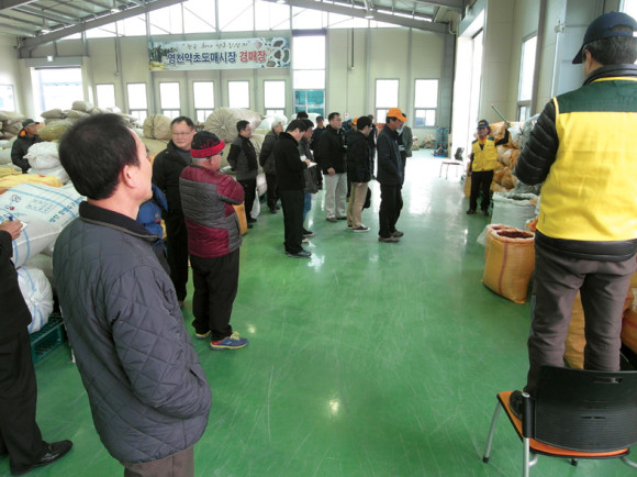 영천시 도동 국내 최대 약초 경매시장이 문을 연지 3개월째 접어들고 있다. 이곳은 겨울인데도 경매가 진행, 약초 상인들로 붐비고 있다. 아직은 매일 경매를 진행하지 않고 장날마다(5일장) 경매가 열리고 있다. 경매시장엔 약초를 구입하는 상인들 뿐 아니라 약초를 판매하는 상인들도 거래가격을 알기위해 많이 나와 거래가에 대해 촉각을 곤두세우고 있다.