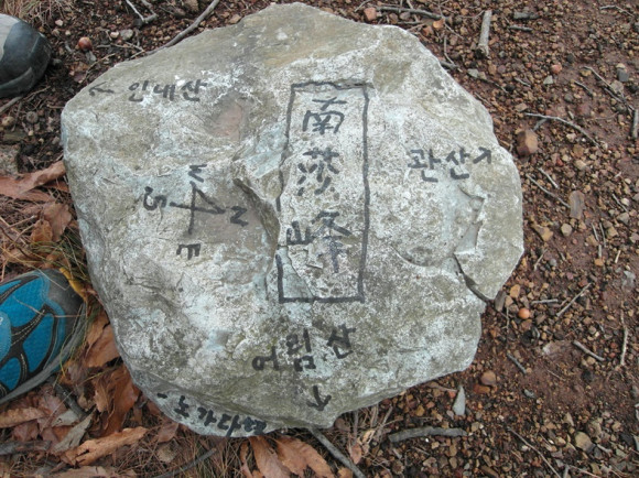 | | | ↑↑ 남사봉 정상에 표석이 없어 누군가가 돌에 남사봉을 중심으로 위치를 안내하고 있다. | | ⓒ 영천시민뉴스 | |
